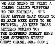 The Letters to the Editor weekly column gave readers a chance to share, opinions, stories and community updates that went beyond the questions the staff may have asked; they give insight into Chevy Chase life in the 1970s.